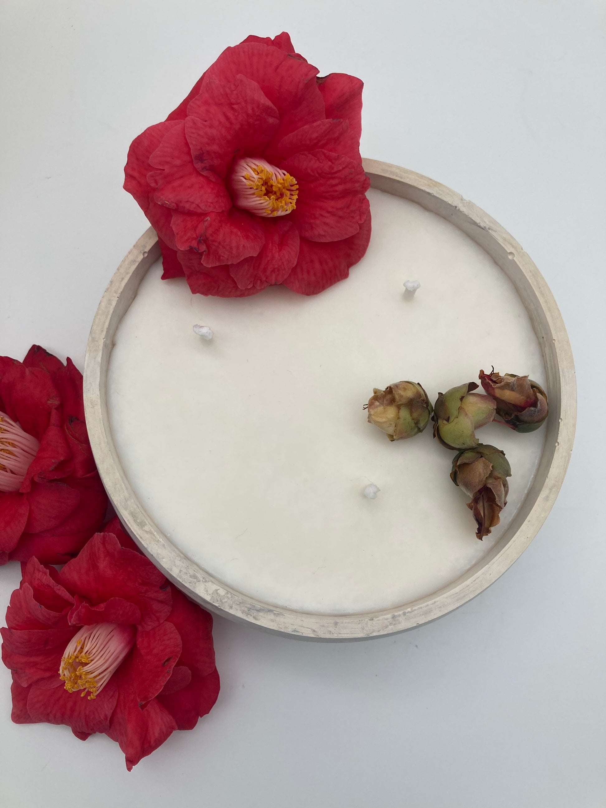 El diámetro de la base son 17 cm y está formada por 600 gramos de cera de soja premium y mechas de algodón orgánico.